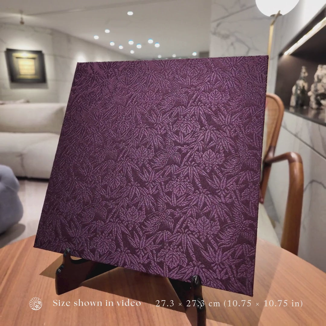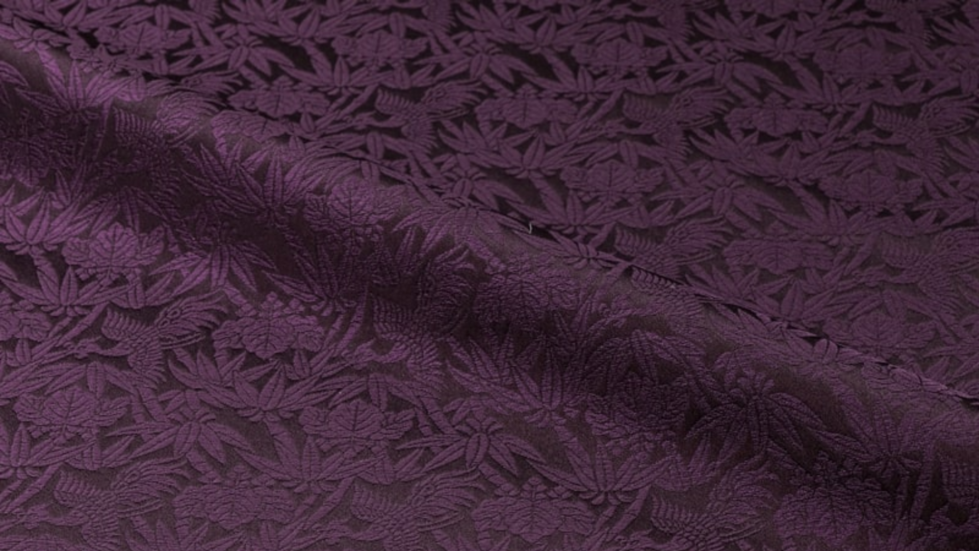 The phoenix is a revered court motif said to dwell in the groves of paulownia and feed on bamboo seeds. Rooted in classical court design, this pattern embodies harmony, virtue, and noble grace. Unlike traditional gold brocades, this textile is woven without gold thread. Its beauty does not rely on brilliance, but on depth of color, intricate structure, and quiet refinement. The absence of metallic sheen allows the form of the phoenix and surrounding motifs to emerge with clarity and composure. Understated yet dignified, this mu-kin kinran expresses elegance through restraint, offering a timeless presence defined not by opulence, but by balance and purity.